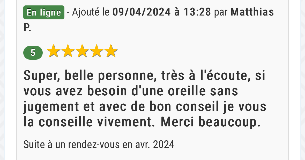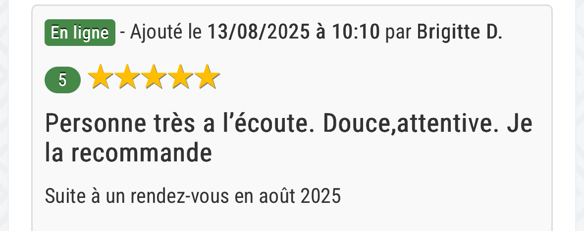 A votre écoute, authentique, discrète et sans jugement pour vous accompagner aux changements souhaités en toute bienveillance, vers un mieux être psychologique qui découlera sur vos axes de vie.