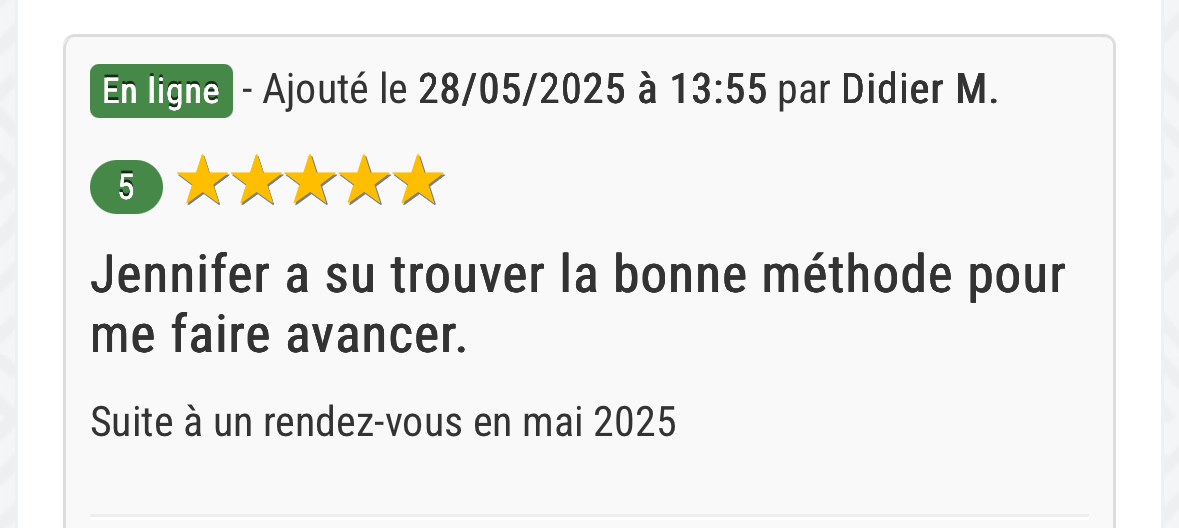 Mes certifications sont reconnues par la Fédération Française d’Hypnose – Thérapies Brèves et par le National Guild of Hypnotists (USA)
