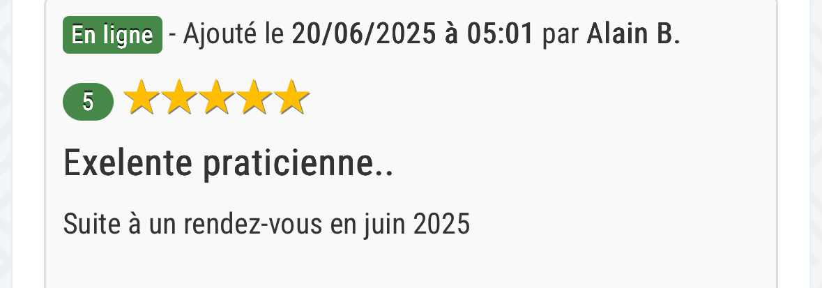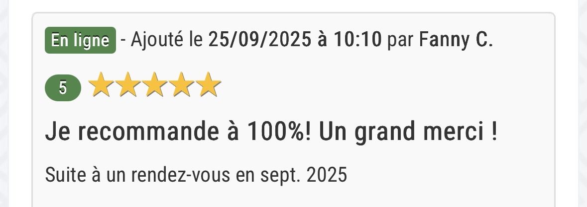 APAISEMENT DES LA PREMIERE SEANCE – TRANSFORMATIONS ET CHANGEMENTS EN 5 SEANCES OU PLUS EN LIEN AVEC LA PROBLEMATIQUE – UN MIEUX INDENIABLE